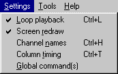 NOTE: All of the following commands are toggled selections. This means if you select them and they are off they will be turned on. The opposite is also true (if they are on and you select them, they will be turned off). Another way to toggle these selections is to click on their indicators in the status bar of the main screen.